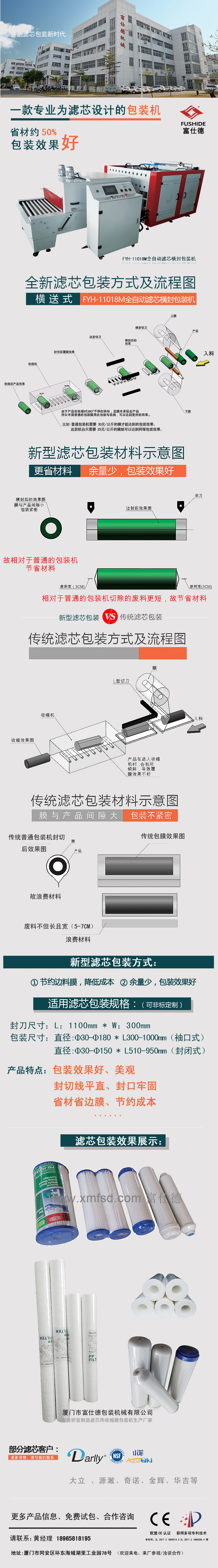 富仕德: 濾芯包裝機(jī)、全自動(dòng)濾芯包裝機(jī)、濾芯熱收縮膜包裝機(jī)、濾芯包裝、濾芯收縮膜包裝機(jī)、濾芯包裝機(jī)械  ,一款專業(yè)為濾芯設(shè)計(jì)的包裝機(jī): 包裝效果好、美觀 封切線平直、封口牢固 省材省邊膜、節(jié)約成本!